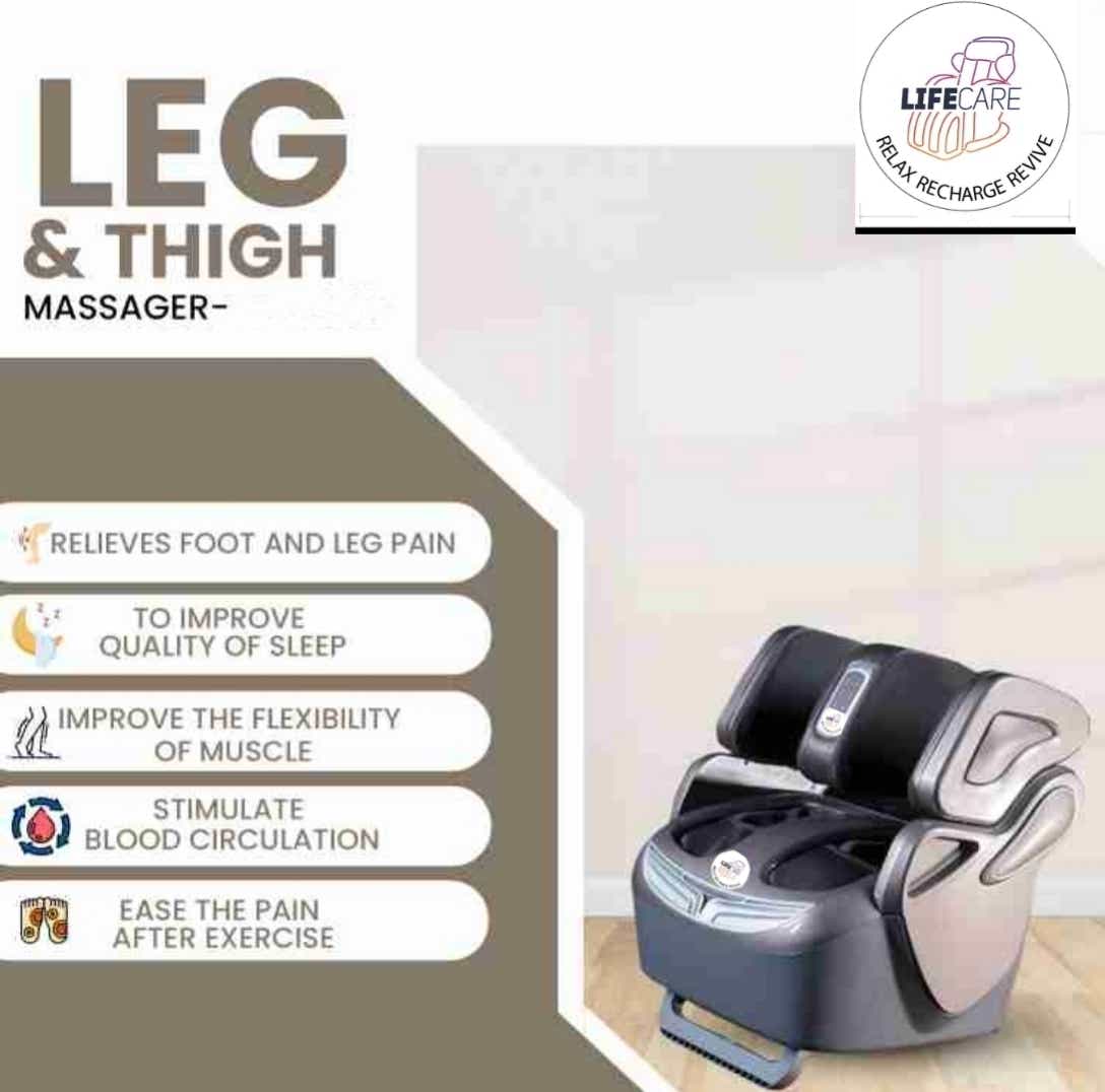 This massager Relieves muscle tension and pain. Improves blood circulation, and reduces swelling and fluid retention in the legs, calves, and feet. The heating function with kneading and shiatsu techniques helps relieve muscle pain, stiffness, and fatigue, especially in the legs and thighs. The massager provides a soothing, spa-like experience that helps relieve stress and promote relaxation.